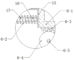 2. when the half gear 6-4 is rotated, the rack 6-3 can be driven to move to one side, when the smooth edge of the half gear 6-4 rotates to the upper side, the rack 6-3 is loosened, the mixing tank 6-1 is pushed to the initial position through the spring 6-2, the antirust material and the talcum powder are mixed and filtered in the process of moving back and forth, the filtering effect is achieved while the mixing effect is achieved, and impurities in the antirust material and the talcum powder are retained on the upper side of the mixing tank 6-1;