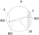 7. The energy-saving environment-friendly heavy metal sewage treatment device according to claim 5, characterized in that: two groups of wavy annular sliding grooves (19) are formed in the inner wall of the stirring box (3), and the other ends of the upper sliding ball group and the lower sliding ball group (803) are clamped in the annular sliding grooves (19).