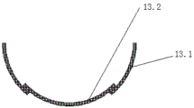 工作时,内底部隔音罩11所在区域部分位于喷涂房内,电机驱动圆形转盘1转动,一区域的夹具组件7夹取零件后位于喷涂房内喷涂,打开隔音移门13.2将另一区域内的夹取组件7夹取零件后电机驱动圆形转盘1转动将喷涂后零件的转出取下,将另一区域内未喷涂的零件转入喷涂房内进行喷涂;喷涂时,零件顶部设中心孔,顶针顶入中心孔内,零件底部由下卡盘卡紧,下卡盘可在电机的驱动下边喷边旋转;喷涂时,如零件顶部不设中心孔,还可在外套筒8.1底部旋接上卡盘,用上卡盘和下卡盘将零件卡紧。When working, the part of the area where the inner bottom