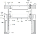 The frame assembly 510 serves as a main frame, and supports and mounts the dust removing assembly 520, and is used for driving and performing dust removing actions. The pressure bearing plate 511 is used for installing one part of the dust removing assembly 520, the pressure applying plate 512 is used for installing the other part of the dust removing assembly 520, and the nickel-plated copper strip 800 is arranged between the pressure applying plate 512 and the pressure bearing plate 511. The supporting base 513 supports the pressure bearing plate 511. The driving air cylinder 514 is used for driving the pressing plate 512 to move close to or away from the pressure bearing plate 511, so that the dust removing assembly 520 can perform dust removing operation on the nickel-plated copper strip 800. Specifically, the supporting base 513 is provided with a mounting groove 513a to accommodate the driving cylinder 514, a driving rod of the driving cylinder 514 penetrates the pressure plate 511 through the communication hole 511a, and an end of the driving rod of the driving cylinder 514 is connected to the pressing plate 512, so as to control the movement of the pressing plate 512.