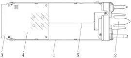支撑框架—1,供电夹—2,金手指—3,电源控制板—4,供电线缆—5。Support frame-1, power supply clip-2, golden finger-3, power control board-4, power supply cable-5.