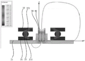 由图3可以看出,当码盘50不导磁时,支撑组件30的内圈滚道311和外圈滚道321处的磁场强度的最大值为0.1特斯拉(tesla)。由图4可以看出,当码盘50导磁时,也即是当码盘50为导磁体,支撑组件30的内圈滚道311和外圈滚道321处的磁场强度的最大值为0.0167特斯拉。其中,内圈滚道311为内圈31上的与滚珠33相结合的沟槽,外圈滚道321为外圈32上的与滚珠33相结合的沟槽。