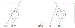Specifically, one end of the swing rod 804, which is far away from the rotating wheel 803, is movably connected with a fixing ring, one end of the pull rope 9 is sleeved on the fixing ring, and the pull rope 9 can rotate on the fixing ring in use, so that the pull rope 9 can be prevented from being wound.