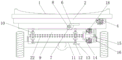 3. fix the front at the loading board through setting up hydraulic telescoping rod, make the device when using, through hydraulic telescoping rod's flexible, can drive the backup pad and remove, thereby make the backup pad support subaerial, be favorable to guaranteeing the support stability of the device, and simultaneously, it is the rotatory setting of cross form to set up the backup pad, make the device when using, can expand according to the demand when using, be favorable to promoting the holding surface between backup pad and the ground, make the backup pad expand or accomodate through rotating, the effectual use flexibility that ensures the device.