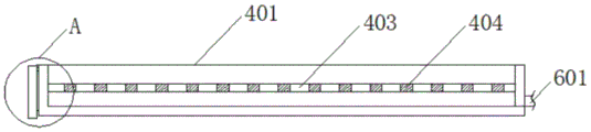 6.根据权利要求1所述的一种新型鸡肠划剖装置,其特征在于:所述滤水组件(6)上设置有出水管(601),所述出水管(601)的下方设置有集水箱(602),所述集水箱(602)的顶端设置有密封盖(603),且集水箱(602)的内侧设置有过滤板(604)。