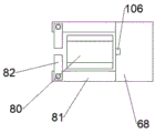 Beneficially, the push-out mechanism 90 includes a second moving cavity 93, a push block 68 is slidably connected in the second moving cavity 93, a third moving cavity 96 is arranged in the push block 68, a second trapezoidal block 67 is arranged in the third moving cavity 96, a fourth spring 66 and a second pull rope 65 are fixedly connected to the upper end of the second trapezoidal block 67, a fourth piston 97 is fixedly connected to the upper end of the second pull rope 65, the fourth piston 97 moves up and down in the second pneumatic cavity 64, a fifth spring 70 is fixedly connected to the right end of the push block 68, the fifth spring 70 is fixedly connected to the right inner wall of the second moving cavity 93, a telescopic oil pipe 69 is further connected to the right end of the push block 68, two baffle plates 81 are fixedly connected to the left end of the push block 69, a stopper 82 is hinged to the baffle plate 81, a torsion spring is arranged at the connection between the baffle plate 82 and the baffle plate 81, an oil injection port 106 is arranged on the left end surface of the push block, a hydraulic cylinder 80 is placed between the baffle 82 and the stop 81.