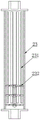 请参阅图4-5,初滤箱2的左侧固定连接有排渣槽22,初滤箱2内腔的左右两侧分别转动连接有主动辊23和从动辊24,且主动辊23和从动辊24的表面之间传动连接有滤网式输送带25,初滤箱2内壁的前后两侧之间且位于滤网式输送带25的内侧固定连接有接水框26,且接水框26前后两侧的底部均与导流管21的顶端连通,初滤箱2底部的左侧固定连接有弹簧27,初滤箱2内壁前后两侧的左下角之间转动连接有刮板28,且刮板28的左侧与弹簧27的顶端固定连接,刮板28的顶部与滤网式输送带25的表面抵触,刮板28与滤网式输送带25接触的位置位于排渣槽22上方,压滤箱1顶部的左侧固定连接有气泵29,气泵29的出气口通过充气管210与主动辊23的前端转动连通,主动辊23的表面开设有排气槽231,主动辊23的内表面且位于排气槽231的前侧固定连接有多组第一叶轮232,且多组第一叶轮232之间通过连接轴固定连接,利用传动中的滤网式输送带25,可对污水进行初步过滤,同时可将滤渣带到左侧进行分离,可持续进行过滤工作,通过设置弹簧27将刮板28压在滤网式输送带25表面,可将滤渣从滤网式输送带25表面刮除,同时设置气泵29向主动辊23的内部吹气,气流从排气槽231排出时,可将滤网式输送带25表面的滤渣吹起,使其脱离滤网式输送带25表面,可更有效彻底的取出滤渣,避免有滤渣堵塞在网孔内部,同时在主动辊23内设置第一叶轮232,配合气泵29吹出的气流还可推动主动辊23转动,进而省去了设置电机,降低了设备成本。