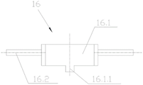 参见图13至图14,所述拆装第一锁紧螺母工具16具有套合在中心轴11外壁、与第一锁紧螺母3同轴相连的环状拆装器16.1,所述环状拆装器16.1周向端面上设有用于插入第一锁紧螺母3上沿周向均布的凹槽3.1的凸块16.1.1,所述环状拆装器16.1侧壁上沿径向设有操纵杆16.2。