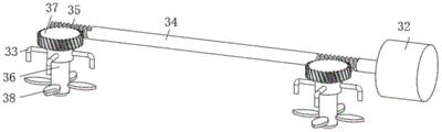 冷却箱26和电气箱31的上部均开设有散热孔41,电气箱31的上表面固定安装有第二电机32,第二电机32的输出端固定连接有转轴34,转轴34上设置有两个蜗杆35,冷却箱26和电气箱31上部均固定连接有固定架33,两个固定架33的中部通过轴承转动连接有转动轴36,两个转动轴36分别位于两个散热孔41中部,两个转动轴36的顶端均固定连接有蜗轮37,两个蜗轮37分别与两个蜗杆35两两相啮合,两个转动轴36的外侧壁均固定连接有扇叶38,便于对电器元件进行降温,有利于提高使用寿命。