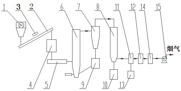 The exhaust port of the induced draft fan 15 is connected with the chimney.