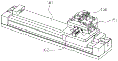 2)输送导轨滑块(14)中的滑块沿着输送导轨滑块(14)中的导轨末端滑入到错位导轨(162)中;