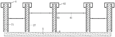 S5、侧墙的钢筋绑扎:侧墙7的钢筋71利用可移动式侧墙钢筋绑扎胎架进行施工,全部钢筋71的相交点都要扎牢,绑扎时相邻绑扎点的铁丝扣成八字形,并严格控制钢筋71保护层厚度;