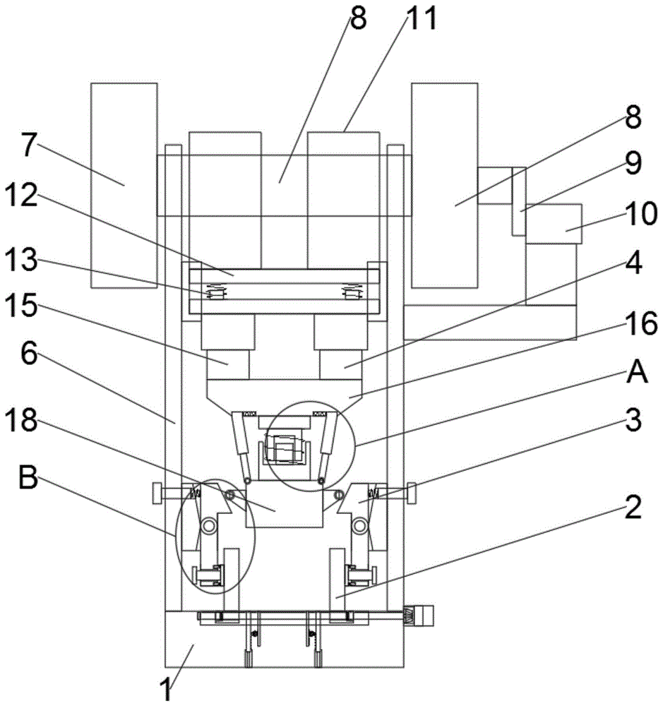 Fig. 1 is a schematic structural diagram of a stamping device for machining automobile stampings.
