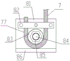 In order to further ensure the locking force of the eccentric sleeve 83, a tooth surface is arranged on the outer surface of the eccentric sleeve 83, a groove of the tooth surface is arranged along the axial direction of the eccentric sleeve 83, and the tooth surface on the outer surface of the eccentric sleeve 83 can increase the friction force between the tooth surface and the steel wire rope, so that the steel wire rope can be locked better.