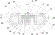 s3, along with the continuous downward movement of the punching head, the punching head drives the upper support 1, the upper cushion plate 2, the fixed plate 3, the pier pressing column 9 and the wedge-shaped rod 11 to move downward relative to the static limiting plate 4, the wedge-shaped surface A12 of the wedge-shaped rod 11 presses the wedge-shaped surface B24 right below the wedge-shaped surface A, the two movable blocks 20 drive the clamping plate 21 to synchronously move towards the direction of the positioning rod 39, the clamping plate 21 drives the extension plate 26 to move towards the direction of the positioning rod 39, meanwhile, the movable blocks 20 compress the horizontal spring 22, after the fixed plate 3 moves downward for a certain distance along the connecting shaft 8, the straight hole 10 of the pier pressing column 9 is sleeved on the conical head 18, the inner side surface of the wedge-shaped rod 11 is matched with the straight surface 23 of the movable block 20, and the semi-circular holes 27 on the two extension plates 26 clamp the rivet column head 37;