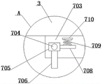 实施例1,固定块705的表面安装有支架706,支架706的顶部安装有拨动板707,固定块705的表面安装有横板708,横板708的表面安装有弹簧709,弹簧709的另一端安装有顶板710,当拨动板707运作时,通过弹簧709进行缓冲,防止拨动板707与挡板610发生硬性碰撞,造成元件损坏,进而保证设备的使用性能和使用寿命。