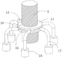 after accomplishing the medicine bottle and placing, through carrying out clockwise rotation around fixed axle 5 with rotation handle 15, make rolling disc 11 at the downward spiral shell screwing in of fixed axle 5's surface, the L shape pole 17 of 11 surfaces of rolling disc moves down along with rolling disc 11 this moment, slider 18 takes place relative rotation at annular groove 16 inside and rolling disc 11 simultaneously, make L shape pole 17 drive briquetting 10 to fixed slot 6 inside removal, finally make briquetting 10 extrude the upper surface at the medicine bottle, further spacing fixed of advancing the medicine bottle, prevent that the medicine bottle from taking place to drop.