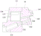 所述第一连接块13的侧端设有连接部135,所述第一连接块13通过连接部135与所述第一抽芯驱动器11的动力输出端传动连接。