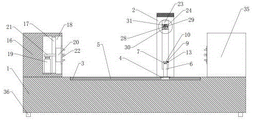 in the specific implementation process, a fixing table 16 is arranged on one side of a reference table 1 and serves as a main body for supporting and installing, a lifting cylinder is embedded in an installation cavity 18 and can drive a lifting block 20 to slide through a pair of connecting rods 21, the lifting block 20 is installed in a sliding groove 17 and is limited by the sliding groove 17, the end portion of a circular pipe is clamped by a clamping disc 22 while the position of the lifting block 20 is adjusted through the lifting cylinder, fixing of circular pipe workpieces with different diameters is achieved, a linear groove is formed in the reference table 1 along the central axis, an auxiliary supporting table 35 is arranged on one side, opposite to the fixing table 16, of the linear groove, and the auxiliary supporting table 35 can slide in the linear groove, so that hoisting equipment can be conveniently placed into the circular pipe.