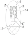 In the invention, a supporting spring 17 is fixedly arranged on the inner wall of the top part of the sliding groove 16, and the bottom end of the supporting spring 17 is fixedly connected with a connecting rod 18.