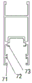 The anti-hook groove is provided with an anti-hook bent edge 204 downwards from the outer end side of the corresponding sliding plane to form a groove-shaped opening with hooking, the anti-hook bent edge 204 is provided with a brush clamping groove on the outer end face, a brush adhesive tape is correspondingly inserted and connected, the brush adhesive tape is in butt joint with the inner side end faces below the inner window sash and the outer window sash, the vertical height of the hook part is smaller than the distance from the lower end of the anti-hook bent edge to the lower sliding plane, and the vertical height of the hook part is smaller than the opening height of the anti-hook bent edge and the lower sliding end face, so that the push-pull fan body can be directly and transversely translated in the installation process to enable the hook part to enter the lower end; the lower cavity with an opening at the lower part is arranged on the upper part 7 of the window sash in the embodiment, a lower hook 8 and a pulley component 9 can be stretched into the cavity for installation, wherein the upper end part of the lower cavity is provided with two symmetrical abutting stop strips 73, the lower ends of the two sides are inwards provided with hook bent edges 71, the two inner end surfaces are provided with limit convex strips 72 which are parallel to the inner edges of the hook bent edges, a brush hook groove is formed between the hook bent edges and the limit convex strips, when the upper part 7 of the window sash is used as the upper part, a brush rubber strip is arranged in the brush hook groove and is attached to the upper sliding matching end surface, and when the lower cavity is used for the lower part, the lower cavity is arranged to provide a limit abutting installation space corresponding to the lower hook 8.