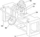 Grinding machanism 5 is including base 51, motor 52, transmission shaft 53, clutch blocks 54, connecting rod 55 and emery wheel 56, and bilateral symmetry is equipped with base 51 around the mounting bracket 3 top, is equipped with motor 52 between the base 51 of front and back both sides, and motor 52 bottom is equipped with transmission shaft 53, and transmission shaft 53 bottom is equipped with clutch blocks 54, and the mounting bracket 3 left side is equipped with connecting rod 55, and connecting rod 55 is connected with motor 52, and the connecting rod 55 end is equipped with emery wheel 56.