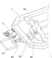 当人们握住推动手柄3,将推动手柄3向下移动,带动外侧的固件1向下移动,第四弹簧95被压缩,外侧的固件1向下移动,带动第二滑动杆91和万向轮2向下移动,使得第二滑动杆91与自锁插销92接触,在自锁插销92的作用,使得第二滑动杆91卡在自锁插销92上,这时通过万向轮2的作用,人们可以将肝胆外科用的手术钩移动到合适的位置上,当人们将手术钩移动到合适的位置上后,人们手动将第二滑动杆91向外移动,第三弹簧93被拉伸,使得第二滑动杆91脱离自锁插销92,第二滑动杆91不再卡住自锁插销92,在第四弹簧95的作用下,带动外侧的固件1、第二滑动杆91和万向轮2向上移动,然后人们松开第二滑动杆91,在第三弹簧93的作用下,带动第二滑动杆91向内移动复位,这时万向轮2向上移动不再工作。