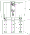 two groups of clamping boxes 8 are arranged inside the cleaning box 2, the bottom ends of the hinging seats 5 are all provided with the hinging seats 5, the bottom ends of the hinging seats 5 are all provided with driving frames 4, the outer walls of the driving frames 4 are all provided with clamp frames 3, driving cylinders 7 are arranged inside the clamping boxes 8 above the clamp frames 3, the types of the driving cylinders 7 are SCJ50X100-50-S-FA, the bottom ends of the driving cylinders 7 are provided with push rods 6, and one ends of the push rods 6 extend into the driving frames 4;