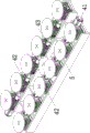 In the present embodiment, the engraving mechanism includes a mounting frame 9, a swinging device 10, a spindle beam 11 and spindles 12, the number of which is matched with that of the speed adjusting devices 42 of one driving assembly; the mounting rack 9 is arranged at the output end of the third linear module 8, and when the mounting rack 9 is used, the lifting or descending operation is realized through the action of the third linear module 8 connected with the mounting rack 9; the spindle cross beam 11 can rotate around itself and is arranged on the mounting frame 9, six spindles 12 are uniformly distributed on the spindle cross beam 11, and the spindles 12 are used for executing engraving operation; the swing device 10 in 11 left sides of main shaft crossbeam set up on the mounting bracket 9, just the output of swing device 10 with 11 of main shaft crossbeam are connected, and the action of the swing device 10 that links to each other through 11 of main shaft crossbeam during the use realizes rotating to main shaft 12 of setting on 11 of main shaft crossbeam can realize the swing, and then adds the cutter on main shaft 12 and can be perpendicular with the curved surface normal direction during processing, and is concrete, swing device 10 preferred is servo motor.