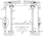综上所述,本发明利用拼接底板设置透明的内防护板,利用内防护板设置由二弹簧弹性支撑的防压盖板,以组成配电柜的内层防护结构;通过在承重基台上方连接的安装台,利用安装台与防压盖板设置透明的外防护板,使得通过内防护板与外防护板即可实现配电柜的便捷拆装,更可以实现全方位的观察监测;通过依次开设进风口、出风口与排热孔,可向配电柜内是持续提供低温冷气,以加速配电柜内的高温热气外排;通过在内防护板上设置由三弹簧弹性安装的限位盖板,通过在限位盖板中倾斜开设排水槽,利用排水槽中的积水深度差加速限位盖板的左右移动,以利用流水对配电柜实现冷敷。To sum up, the present invention utilizes splicing bottom plates to set transparent inner protective plates, and utilizes inner protective plates to set anti-pressure cover plates elastically supported by two springs to form the inner protective structure of the power distribution cabinet; The connected installation platform uses the installation platform and the anti-pressure cover to set a transparent outer protective plate, so that the power distribution cabinet can be easily disassembled and assembled through the inner protective plate and the outer protective plate, and all-round observation and monitoring can be realized; through The air inlet, air outlet and heat exhaust holes are set up in sequence, which can continuously provide low-temperature cold air to the power distribution cabinet to accelerate the discharge of high-temperature hot air in the power distribution cabinet; The limit cover plate is inclined to open a drainage groove in the limit cover plate, and the left and right movement of the limit cover plate is accelerated by using the depth difference of accumulated water in the drainage groove, so as to realize cold compress on the power distribution cabinet by running water.