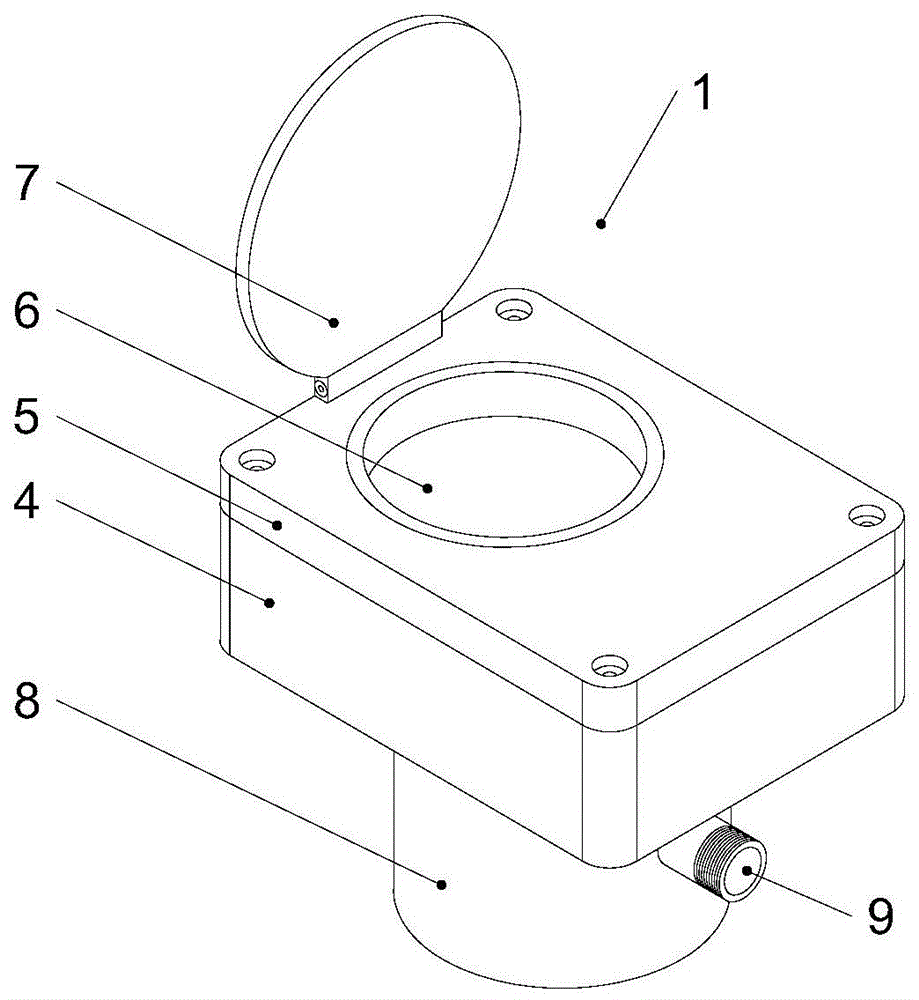 Wherein, fixed mounting has the hinge between dial plate lid 7 and the water meter cover 5, and dial plate lid 7 passes through hinge and 5 fixed connection of water meter cover, through the installation hinge, makes things convenient for opening and closing of dial plate lid 7 to effectively protect reading dial plate 6.