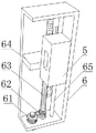 It is worth noting that the transmission mechanism 6 comprises a driving motor 61, a transmission belt 62, a threaded rod 63, a lifting plate 64 and a positioning guide rod 65, the transmission belt 62 is sleeved on the surface of an output shaft of the driving motor 61, the surface of the threaded rod 63 is in transmission connection with the surface of the output shaft of the driving motor 61 through the transmission belt 62, the lifting plate 64 is in threaded sleeve connection with the surface of the threaded rod 63, a stamping head 5 is welded and fixed to one end of the lifting plate 64, two ends of the positioning guide rod 65 are welded and fixed to the inner surface of the transmission mechanism, the surface of the positioning guide rod 65 is movably sleeved with the inner wall of the lifting plate 64, the driving motor 22 and the transmission belt 23 are used for driving the threaded rod 24 to rotate, stamping strength of the stamping head 5 during stamping operation under the cooperation of the lifting plate 25 is guaranteed, and stability of the lifting plate 25 when driving the stamping head 5 to move can be effectively improved through the positioning guide rod 26.