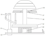 其中:1.离散化芯模层单元、2.芯模组装单元、3.芯模层间锁紧机构、4.芯模层单元上升机构、5.芯模升降单元、6.PLC 、7.高清摄像头、8.升降平台、9.第一升降传动轴、10.安装基底、11.联轴器、12.伺服电机、13.旋转电机、 14.旋转台 15.压紧机构 16.压力传感器 17.芯模夹持结构 18.第二上升传动轴 19.芯模贮存区 20.驱动电机。