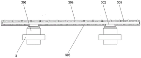 进一步,固定块3的内部贯穿安装有门伸缩杆301,门伸缩杆301的顶部安装有安装板302,安装板302的顶部安装有支杆303,支杆303的顶部安装有喷头304,支杆303的背部安装有刷子305,固定块3可以为门伸缩杆301提供支撑固定,门伸缩杆301可以带动安装板302进行升降,安装板302可以为支杆303提供安装空间,支杆303可以为喷头304提供支撑固定,喷头304可以外接水管,且可以向门玻璃207喷射清洁水,刷子305可以在门伸缩杆301的带动下进行进行清洁工作。