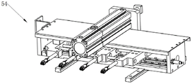 Further, the assembly table 20 includes a second guide rail 21, a first slider 22, a base 36, a third clamping arm 24, a fourth clamping arm 25 and a driving cylinder 26, the second guide rail 21 is disposed on the platform 10, the first slider 22 is slidably sleeved on the second guide rail 21, the base 36 is disposed at the top of the first slider 22, the third clamping arm 24 and the fourth clamping arm 25 are both disposed on the base 36, the third clamping arm 24 is located at a position where the base 23 is close to one end of the loop bar assembly 40, the fourth clamping arm 25 is located at the other end of the base 23, and the driving cylinder 26 is disposed at a bottom of the base 33 and used for controlling the movement of the base 23 in the vertical direction, so as to facilitate the connection and removal of the fixing seat 80.