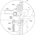 As shown in fig. 2, 3, and 11 to 16, in some embodiments, the spray module 10 further includes a first water inlet pipe 1001, a second water inlet pipe 1002, a nozzle 1003, a third guide rod 1004, a movable frame 1005, a third spring 1006, a first rack 1007, a first ball valve 1008, a first gear 1009, a second ball valve 1010, a second gear 1011, and a second rack 1012, the first water inlet pipe 1001 is connected to the rear side of the upper portion of the housing 1, the second water inlet pipe 1002 is connected to the front side of the first water inlet pipe 1001 and the left and right sides of the upper portion of the cleaning tank 2, the nozzle 1003 is symmetrically connected to the front side of the lower portion of the second water inlet pipe 1002, the third guide rod 1004 is connected to the rear side of the middle portion of the housing 1, the movable frame 1005 is slidably connected to the third guide rod 1004, the movable frame 1005 is engaged with the sliding rod 802, the third spring 1006 is connected between the movable frame 1005 and the housing 1, and the third spring 1006 is sleeved on the third guide rod 1004, the activity frame 1005 upper portion rear side bilateral symmetry is connected with first rack 1007, the inside front side rotation formula of one-level inlet tube 1001 is connected with first ball valve 1008, first ball valve 1008 transmission shaft left and right sides all is connected with first gear 1009, first gear 1009 is mutually supported with first rack 1007, the inside middle equal rotary type of second grade inlet tube 1002 is connected with second ball valve 1010, second ball valve 1010 transmission shaft is connected, second ball valve 1010 transmission shaft middle part is connected with second gear 1011, carriage 703 lower part rear side is connected with second rack 1012, second rack 1012 and second gear 1011 mutually support.