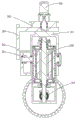 the deflection device is in transmission connection with an electric spindle 308.