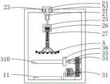 需要注意的是,夹持杆37设置于清洗组件2正下方,清洗箱1内底面上固定连接有底座11,底座11设置于夹持杆37正下方。