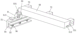 进一步的,如图1、图2和图4所示,滑动板44远离齿轮43的一侧中部开设有十字滑槽441,固定块73靠近齿轮43的一侧固定连接有与十字滑槽441相适配的十字滑块731,十字滑槽441滑动连接在十字滑块731上,通过十字滑块731与十字滑槽441的配合设置,能够使得滑动板44的移动更加稳定,防止滑动板44在移动过程中出现倾斜的现象。