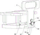 还包括有升降机构8,升降机构8包括有内齿圈81、转把82、第一齿轮83、第三弹簧84、第二导向杆85、滑块86、第四安装块87、锥齿轮88、第四弹簧89、第二齿轮810和第二连接板811,第一连接板2右侧下部设有第二连接板811,第一连接板2下侧滑动式设有第一齿轮83,第一齿轮83左侧与第一连接板2之间连接有第四弹簧89,第四弹簧89套在第一齿轮83上,底板1顶部右侧中间设有第四安装块87,第四安装块87中部转动式设有第二齿轮810,第二齿轮810左端与螺纹杆63下侧均设有锥齿轮88,锥齿轮88相互啮合,第二齿轮810与第一齿轮83接触,第一连接板2右侧下部前后对称设有第二导向杆85,第二导向杆85处于第二连接板811下侧,第二导向杆85之间滑动式连接有滑块86,滑块86与第一连接板2之间均连接有第三弹簧84,第三弹簧84套在对应的第二导向杆85上,滑块86中部转动式设有内齿圈81,内齿圈81右上侧设有转把82。