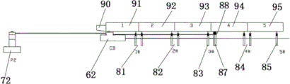 本实施例与实施例3相比,区别之处在于:步骤2中间段钢梁为第六段钢梁,预拼接第六段钢梁前端的第一段钢梁91、第二段钢梁92、第三段钢梁93、第四段钢梁94和第五段钢梁95;