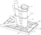 7.根据权利要求1所述的用于海上升压站的深水脚靴式导管架结构,其特征是,所述的箱式防沉结构(15)包括防沉裙板(16)、防沉面板(17)与面板加强梁(18),四块防沉裙板(16)围拢构成矩形框架结构,防沉面板(17)铺设在防沉裙板(16)顶部构成底面开口的箱体结构。