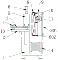 4.根据权利要求1所述的智能家具生产线用精密五碟开榫设备,其特征在于:所述壳体(14)的内部设置有除屑机构(8),所述壳体(14)的顶端安装有控制台(12),所述除屑机构(8)包括导管(801)、折叠管(802)、滤尘袋(803)和吸风机(804),所述吸风机(804)安装在壳体(14)的内部,所述吸风机(804)的底端安装有滤尘袋(803),所述吸风机(804)的一侧安装有导管(801),且导管(801)的一侧均固定有折叠管(802)。