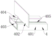 具体地,如图1、图2和图3所示,使用时,通过测量尺405对材料的长度进行测量,紧接着根据测量的长度拉动限位板402移动至预留长度位置,同时限位板402带动滑块403在滑壳401的内部滑动,使限位板402的移动路线受到限制仅可进行直线移动,通过旋转固定螺栓404,使固定螺栓404穿过滑块403与滑壳401相接触,增大滑块403与滑壳401之间的摩擦力,使滑块403与滑壳401固定将限位板402的位置固定,通过限位板402对材料进行阻挡,限制材料的位置;
