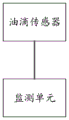Preferably, as shown in fig. 10, fig. 10 is a block diagram of the whole; the monitoring unit may include: a processor and a server; the processor is used for calculating and obtaining an oil leakage rate according to the pulse signal, receiving the early warning oil leakage threshold value from the server, and sending a warning signal to the server when the oil leakage rate is greater than the early warning oil leakage threshold value; and the server is used for receiving the oil leakage rate from the oil drop sensor, judging whether the oil leakage rate calculated and obtained by the processor is the actual oil leakage rate or not based on rainfall data shown by weather information of the location of the transformer substation oil filling equipment, and executing alarm under the condition that the oil leakage rate calculated and obtained by the processor is the actual oil leakage rate and an alarm signal from the processor is received.