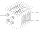 mounting holes are formed in the outer walls of two sides of the crushing frame 201, the two filter screens 202 are respectively embedded in the two mounting holes, one ends of a transmission shaft 211 and a driven shaft 212 are respectively connected to the outer wall of one side of the crushing frame 201 through bearings, a first driven wheel is sleeved on the outer wall of one end of the transmission shaft 211, and a second driven wheel is sleeved on the outer wall of one end of the driven shaft 212;