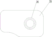 S3、工人控制冲压模具的冲压头向下运动,冲压头带动上模向下运动,两个上传力柱28向下穿过侧导向孔10而抵压在顶板21上,上传力柱28将顶板21向下压,顶板21受压后带动下凸模22、圆凸台23和活动块34同步向下运动,在向下运动过程中,半成品引深零件的筒体36进入到中间导向孔9内,当处于临界闭模状态时,半成品引深零件的板体35抵压于卸料板33和压料镶件31之间,且活动块34的楔形面I20与左斜面14相接触,楔形杆29的楔形面II30与右斜面15相接触;