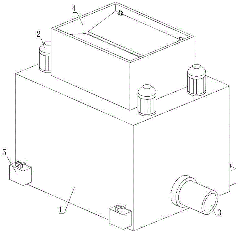 FIG. 2 is a schematic structural diagram of a main box body of the efficient material mixing device for grass cloth production of the present invention;
