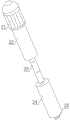 the stirring mechanism 2 comprises a motor 21 arranged at the upper end of the main box body 1, a first-stage rotating cylinder 22 arranged at the lower end of the motor 21, a heating rod 23 arranged at the lower end of the first-stage rotating cylinder 22, and a second-stage rotating cylinder 24 arranged at the lower end of the heating rod 23, wherein the lower end of the second-stage rotating cylinder 24 is provided with a rotating tooth 25, and the second-stage rotating cylinder 24 and the side hole 691 are arranged in the same vertical plane.