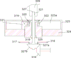 进一步的,第一固定盘324上螺纹连接有移动套343,移动套343上开有连接孔,行走主动齿轮327a上方的转向行走轴327经在高度方向上间隔设置的两个圆锥滚子轴承325连接在移动套343内,上面的圆锥滚子轴承325上侧和下面的圆锥滚子轴承325下侧的转向行走轴327均连接有摩擦套318,摩擦套318包括两个连接卡箍318a,两个连接卡箍318a将转向行走轴327卡紧后,使用两个紧固件318b将连接卡箍318a连接在转向行走轴327上,实现转向行走轴327下移的动力结构为,第一固定盘324上侧固定连接有具有朝下开口323a的支撑壳体323,开口323a内的移动套343经第一传动键320连接有下移传动蜗轮322,第一固定盘324上侧固定连接有转向电机331,转向电机331上连接有下移传动蜗杆319,下移传动蜗杆319与下移传动蜗轮322配合,下移传动蜗轮322的上部可转动地连接在支撑壳体323上。
